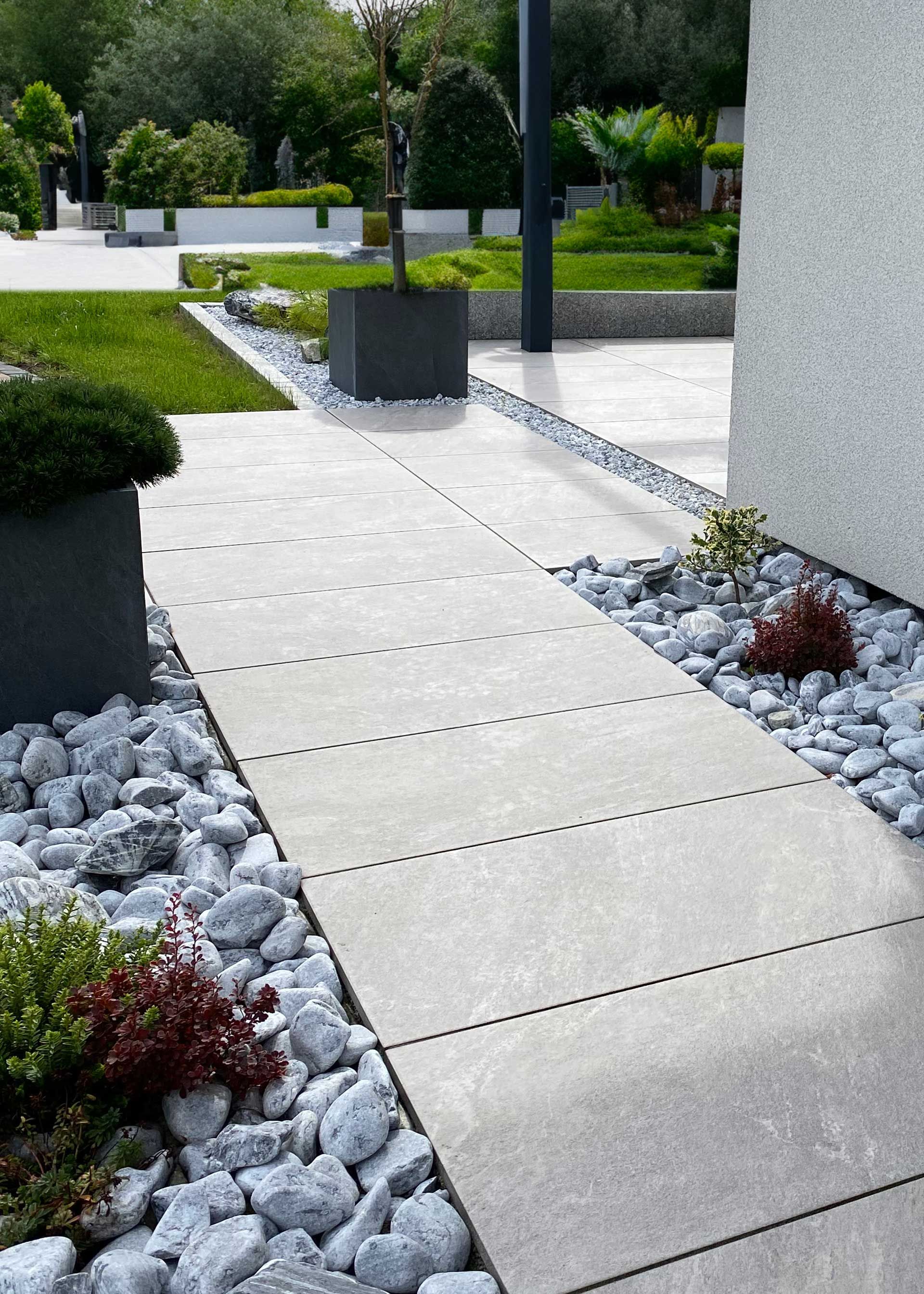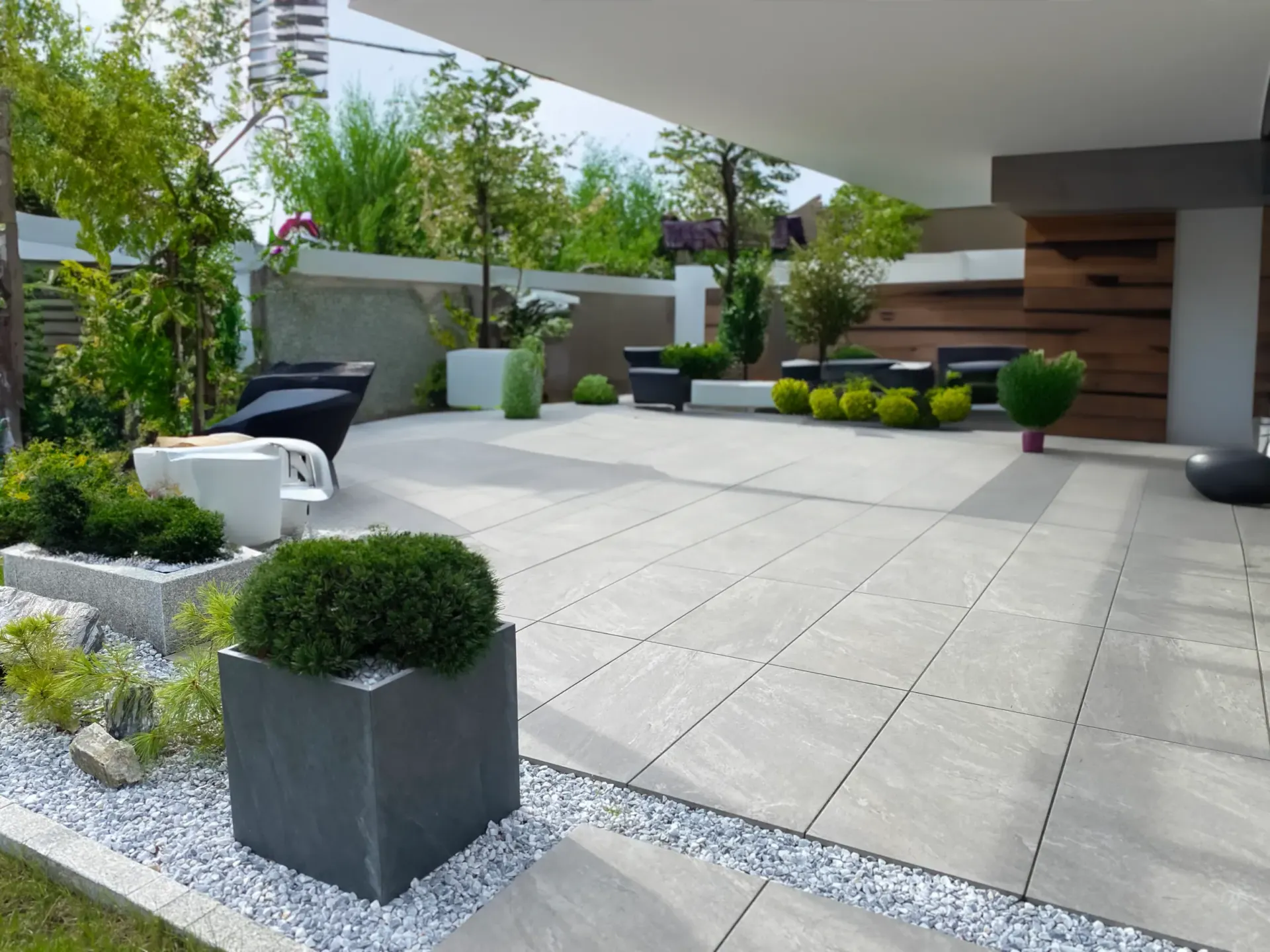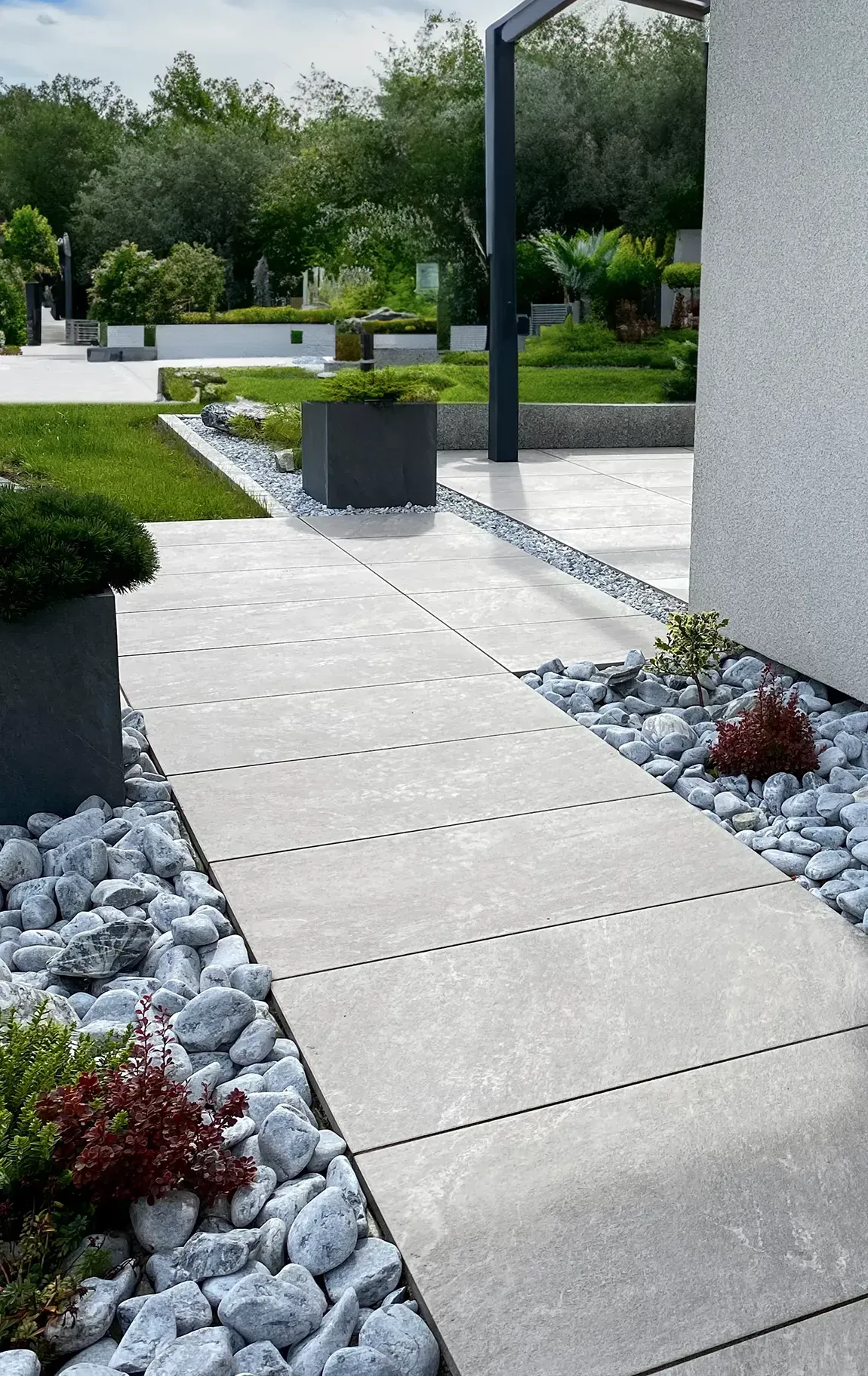 Płyty tarasowe Ash Stone wyróżniają się jasnymi odcieniami popiołu oraz wyrazistą strukturą inspirowaną naturalnym kamieniem. Delikatne tonacje na pograniczu szarości i beżu sprawiają, że harmonijnie komponują się z różnorodnymi aranżacjami, dodając elegancji i uniwersalnego charakteru każdej przestrzeni.