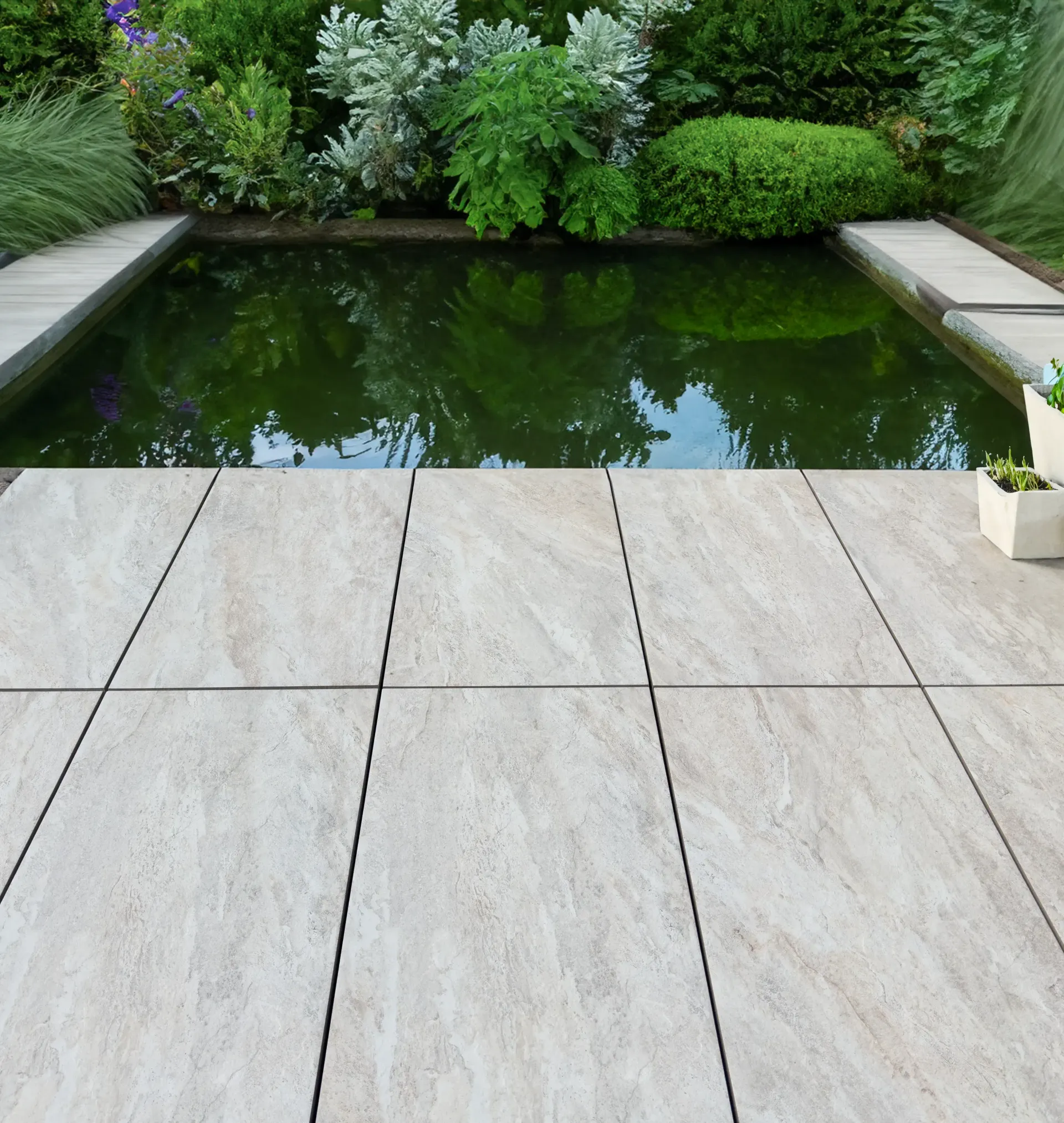 Płyty tarasowe Dolomite Dust charakteryzują się ciepłą, beżową kolorystyką z subtelnymi brązowymi smugami, rozjaśnionymi kremowymi refleksami. Ich wygląd przywodzi na myśl ciepłe klimaty śródziemnomorskie.