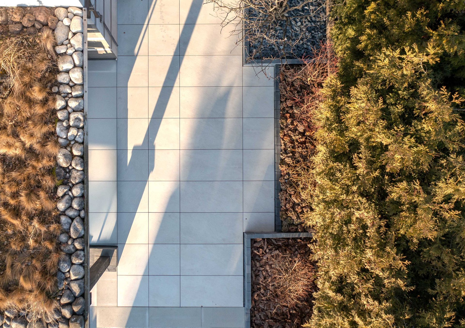 Stonowane odcienie szarości i beżu Stoneo Giallo doskonale komponują się z naturalnym otoczeniem, tworząc przytulną i zarazem elegancką atmosferę. Przestrzeń wypełnia subtelne światło, które wprowadza harmonię i spokój. Połączenie subtelnej estetyki kamienia z wyjątkową trwałością sprawia, że płytki są idealnym wyborem do długotrwałego użytkowania na tarasie.
