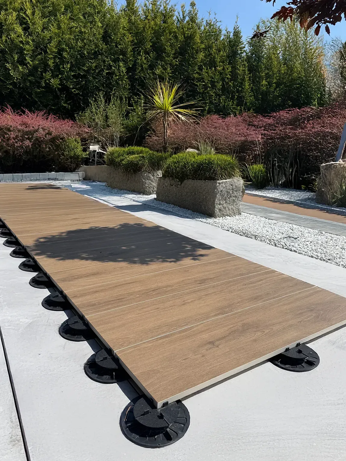 Propozycja dla osób, które chcą połączyć ciepły, drewniany klimat z trwałością nowoczesnych materiałów. Płyty o grubości 2 cm tworzą stabilną, solidną nawierzchnię idealną do przestrzeni zewnętrznych. Delikatny odcień beżu wraz z subtelnym rysunkiem słojów nadaje powierzchni elegancki, naturalny charakter. Płyty świetnie sprawdzą się na tarasach, w ogrodowych alejkach, na balkonach czy w strefach wypoczynkowych przy domu.